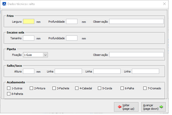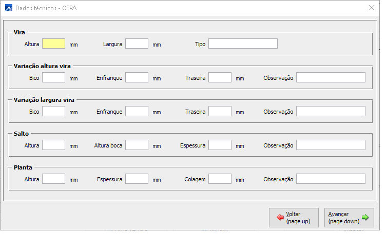Dados técnicos para tipo de produto 1-Sola ou 2-Cepa: