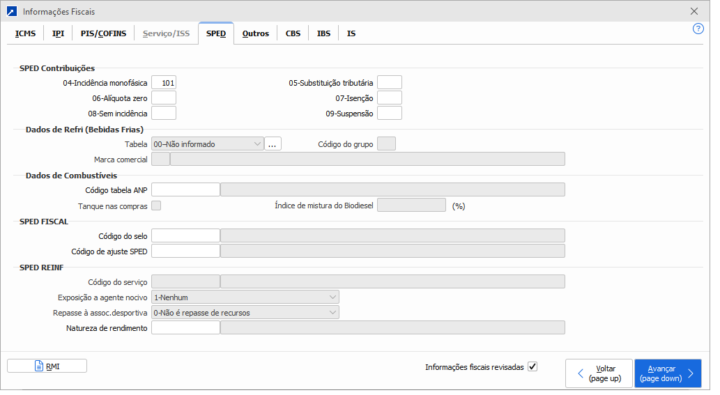 A emissão de notas fiscais de venda e devolução de gás GLP (Gás Liquefeito de Petróleo) exige atenção especial no preenchimento dos campos. Com a implantação da versão 4.0 da NF-e, foram criados novos campos para o gás GLP, cujo preenchimento incorreto pode causar rejeições na emissão da nota fiscal. Primeiramente no menu FAT 1.6.A > [Inf. Fiscais ] > [Sped] deve-se acessar o cadastro do produto e verificar se nele está informado o Código Tabela ANP.