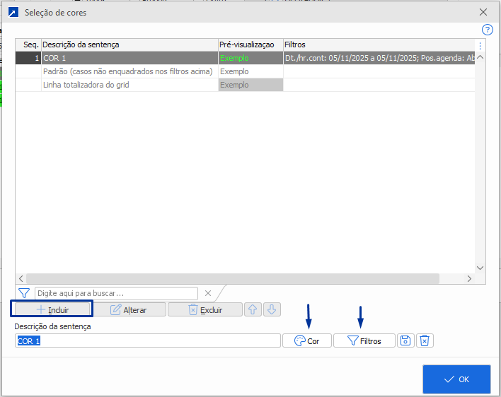 Nesse cenário, o SIGER® irá colorir todas as agendas processas na tela que se enquadrem no filtro de cada cor definida.