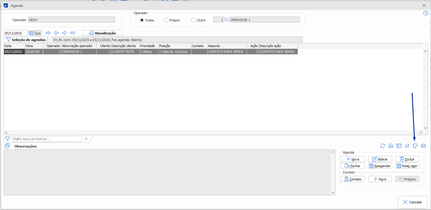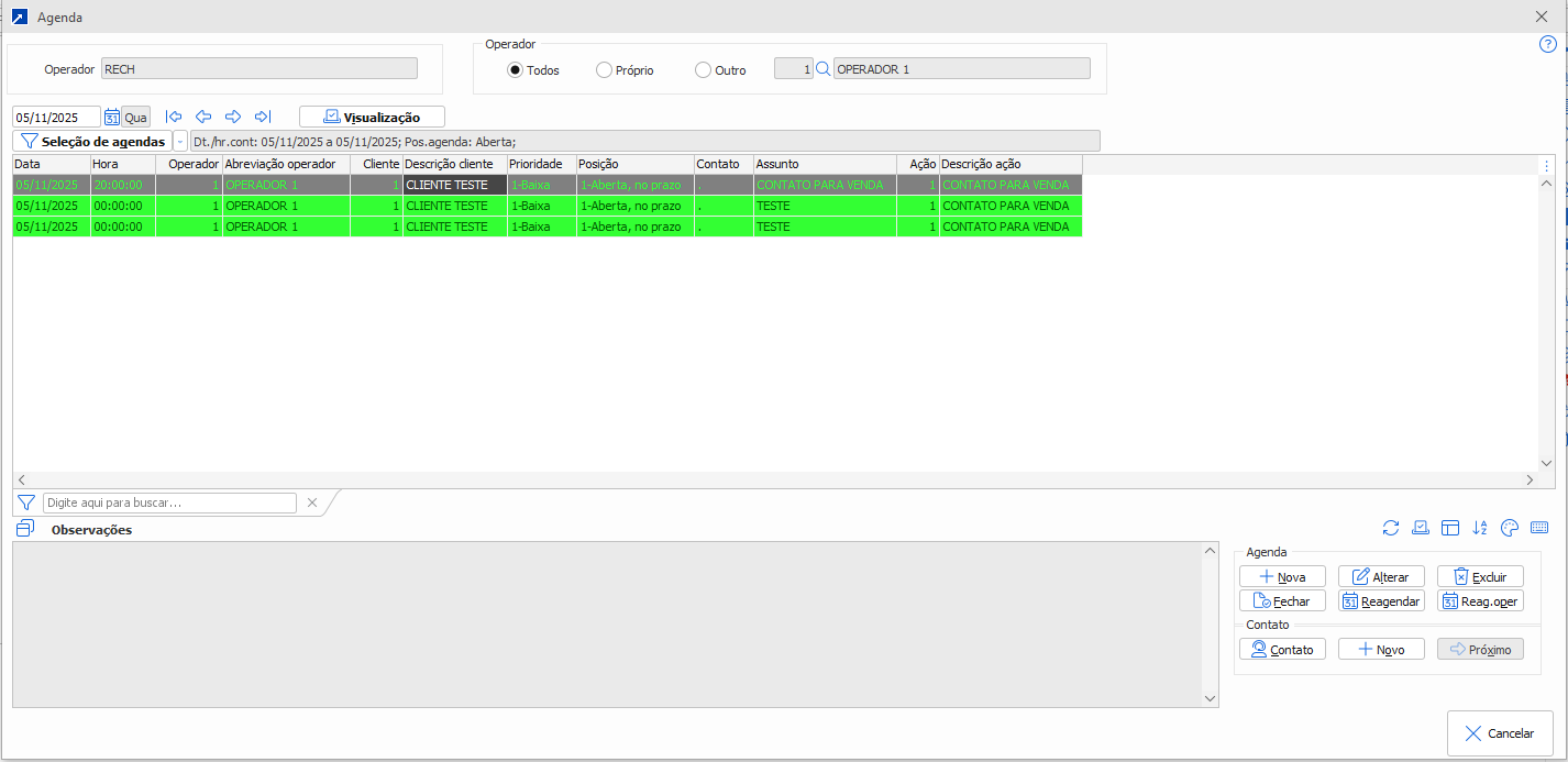 A agenda do SIGER® permite a aplicação de uma série de opções de filtragens que facilitam a ação do operador.