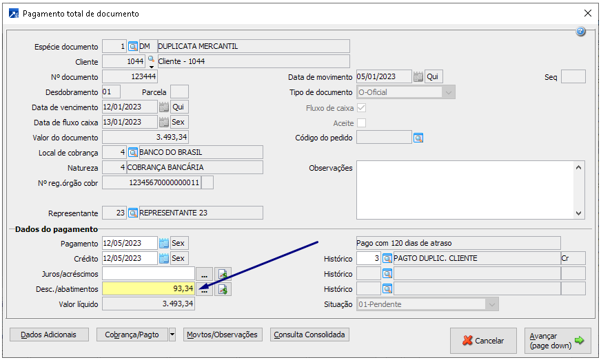 Este campo define aplicação de bloqueio para conceder desconto a cliente na quitação do documento.