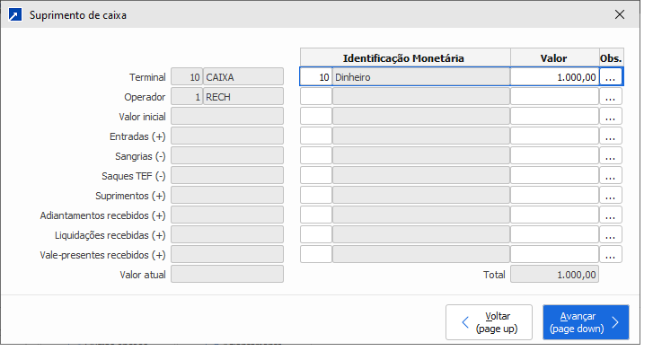02 Suprimento de caixa - Realiza a entrada ou inclusão de valores no caixa.
