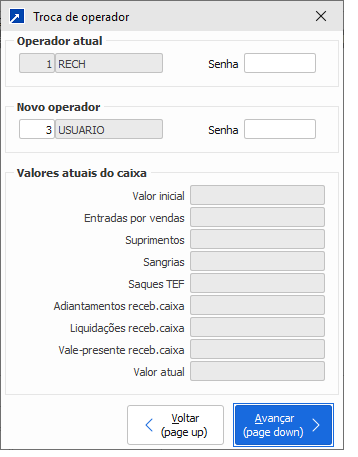 03 Troca de operador - Efetua a troca do operador do caixa.