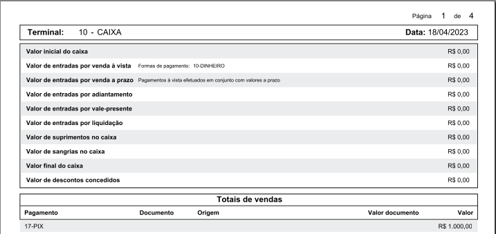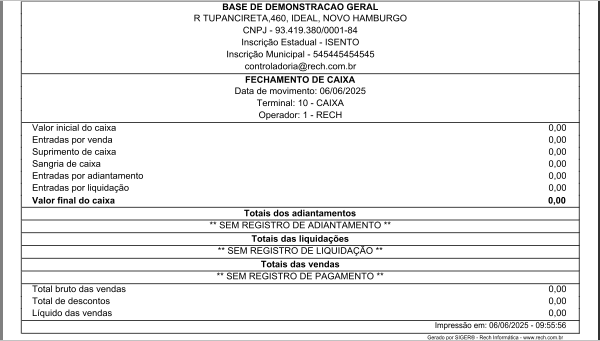 04 Fechamento do caixa - Realiza o fechamento do caixa. Após esta operação, não poderão mais ser realizadas vendas e movimentações no caixa. No final será emitida listagem do movimentos.