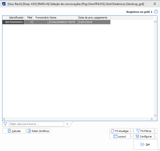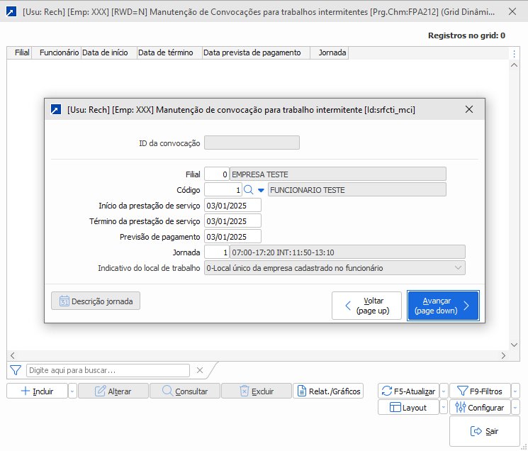 A cada convocação do funcionário para trabalhar é necessário incluir a convocação no MENU FPA 2.C-M, botão [Incluir].