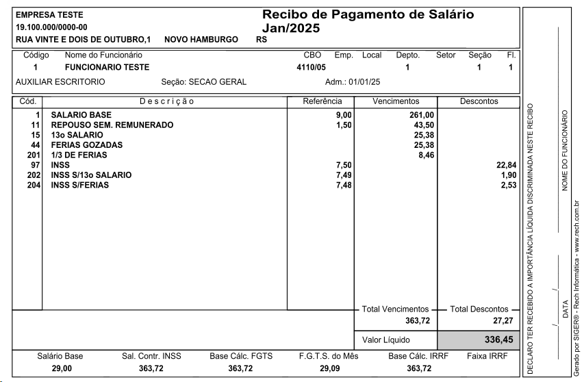 Lembrando que o funcionário poderá ter mais de uma convocação no mês, a cada cálculo da convocação será gerado um recibo de pagamento e SIGER® irá apurar o INSS e IRRF considerando todos os pagamentos da competência.