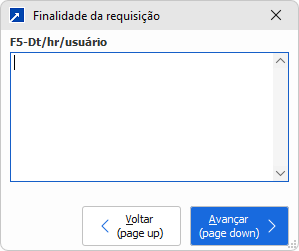 No botão [Vencimentos] aceita o Texto da finalidade. Carrega o texto a partir do código da finalidade informada e permite complemento descritivo.