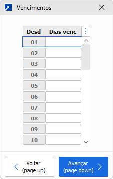 No botão [Vencimentos] aceita os dias de vencimento de cada parcela.