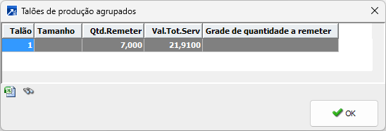 Após o processamento das ordens de produção, é aceita a janela para seleção dos talões de produção, conforme a imagem a seguir: