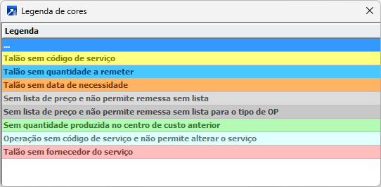 Exemplo: ao configurar como critério de agrupamento a mesma OP/Sequência, todos os talões de produção da mesma OP/Sequência serão agrupados na mesma remessa de serviço externo. Para cada OP/Sequência diferente na seleção será criada uma remessa diferente.