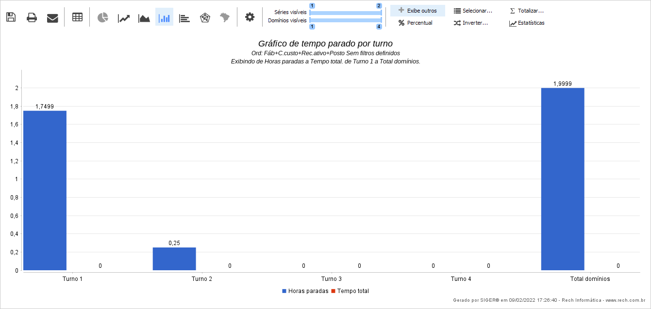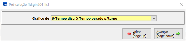 Com a utilização do menu GIN 2.4-G, será possível visualizar graficamente o comportamento das paradas registradas, podendo comparar dados nos seguintes formatos:
