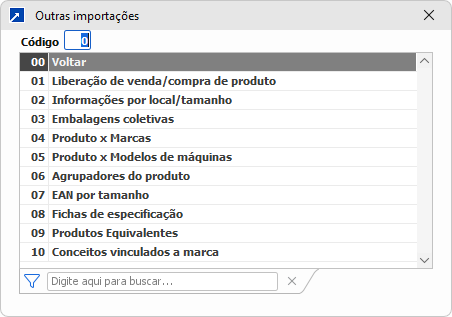 Através da importação de planilhas, acessada pelo menu 1.6-H, é possível incluir cadastros de produtos ou alterar dados de cadastros já gravados no SIGER®.