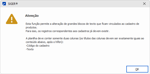 Alguns campos do SIGER® aceitam um texto muito extenso e nesses casos a importação via planilha é feita no formato de "Importação de textos".
