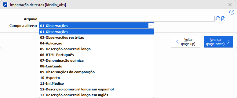 Para isso, pode ser acessado no 1.6-H pelo botão [Importar textos].