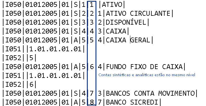 Está opção deve ser utilizada para importação de planos de contas com somente um nível para contas analíticas e sintéticas no arquivo ECD.