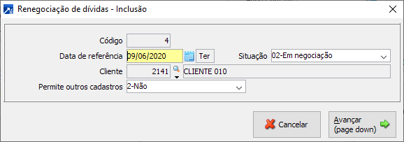 Obs.: Este tópico não tem o intuito de orientar a inclusão de Contatos no Telemarketing, serão abordados somente os pontos relativos à Renegociação de Dívidas.