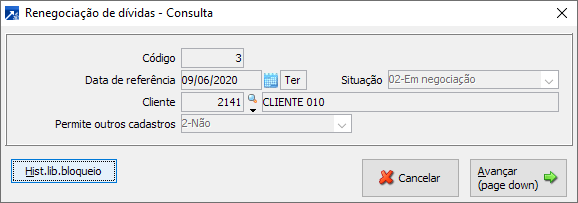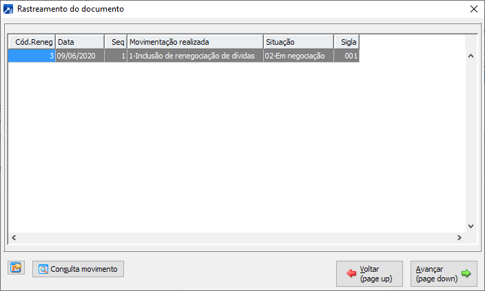 No botão <Consulta movimento> o usuário tem acesso à consulta da Renegociação de Dívidas.