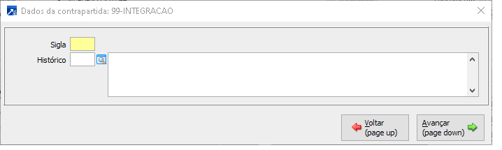 Nesta janela são inseridas informações adicionais das contrapartidas, seguindo a mesma lógica dos dados das partidas.
