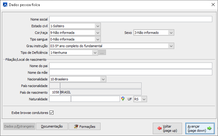 Informar neste botão os dados pessoais do cadastro, quando utilizado para o módulo de folha de pagamento.