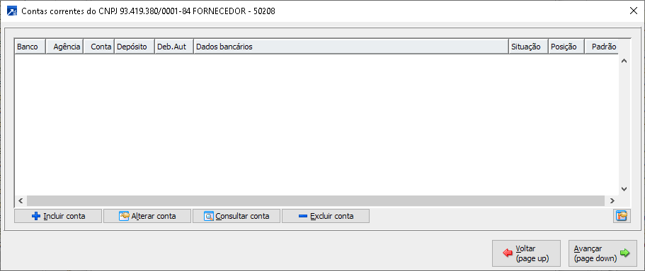 Neste botão informar o dados da conta corrente do cadastro, esses dados serão utilizados para o módulo adicional controle de cheques do financeiro.