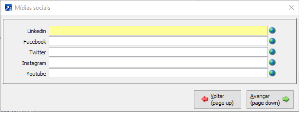 Informar neste botão os perfis das redes sociais do cadastrado.