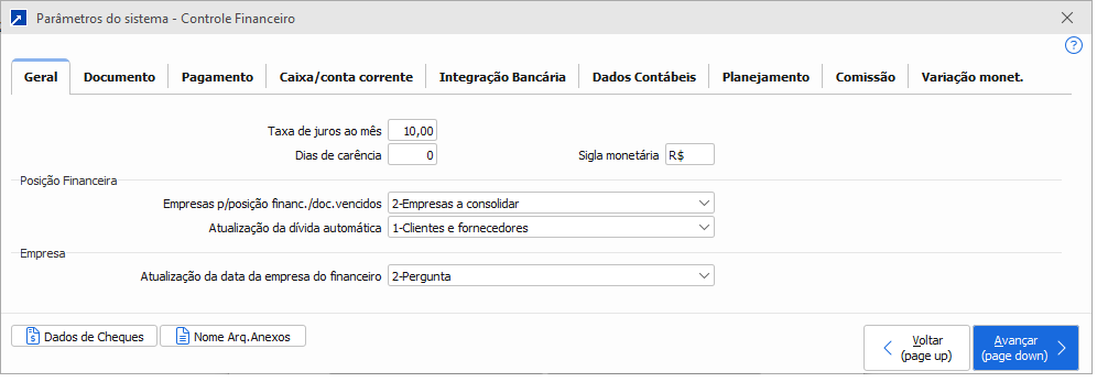 O parâmetro do sistema “Empresas p/ posição financeira e documentos vencidos”