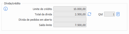 Quando o sistema está configurado para não considerar outras empresas, os valores de Limite de crédito e Total da dívida são sempre obtidos somente da empresa em processamento.