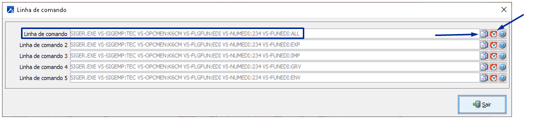Ao selecionar o botão será exibida a janela "Linha de comando", nessa janela copie a primeira linha de comando, também, é possível configurar a tarefa por essa janela, acessando o botão "Configua tarefa agendada para linha de comando", aqui representada pela imagem de relógio, exemplo na imagem abaixo.