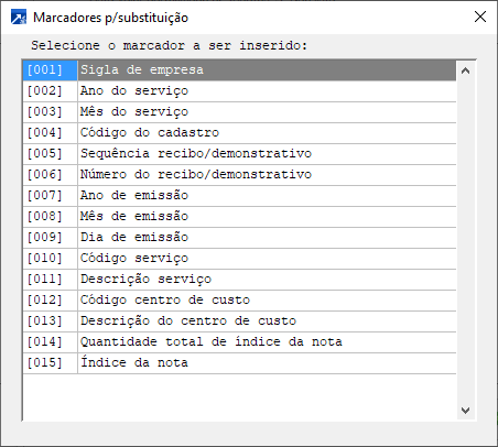 Neste campo estão disponíveis os marcadores, acessado pela função "F4-Marcadores", disponível na linha amarela, opões de marcadores:
