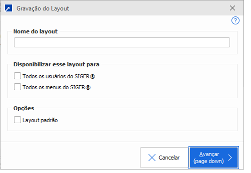 Todos os usuários do SIGER: quando marcado torna o layout "Público" e todos os usuários do SIGER® poderão usar ele, se não for marcado o layout será "Privado", visível apenas para o usuário de criação