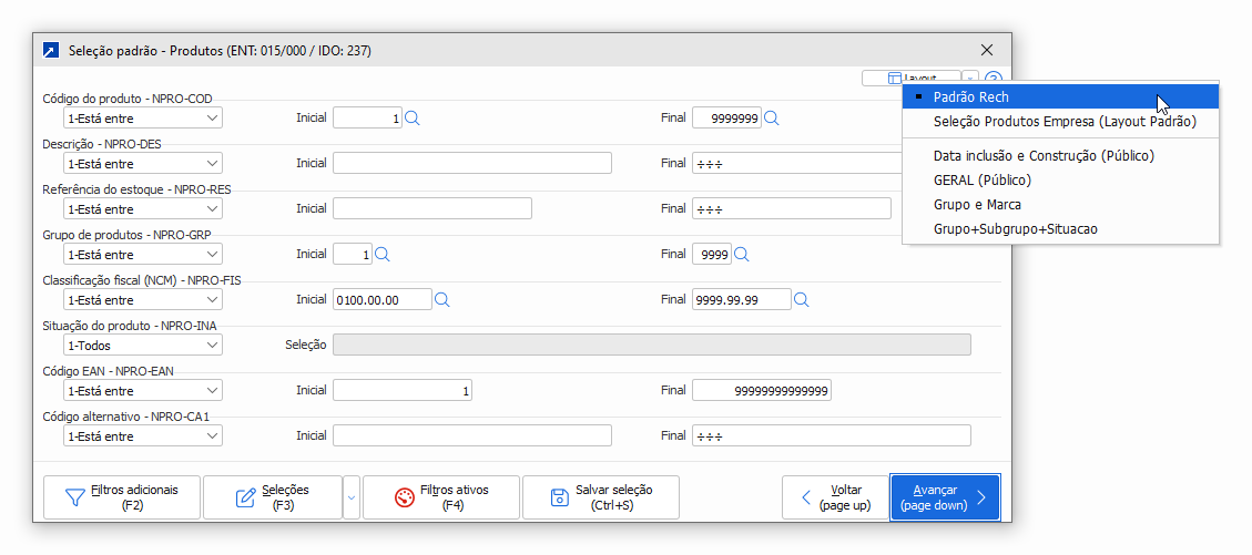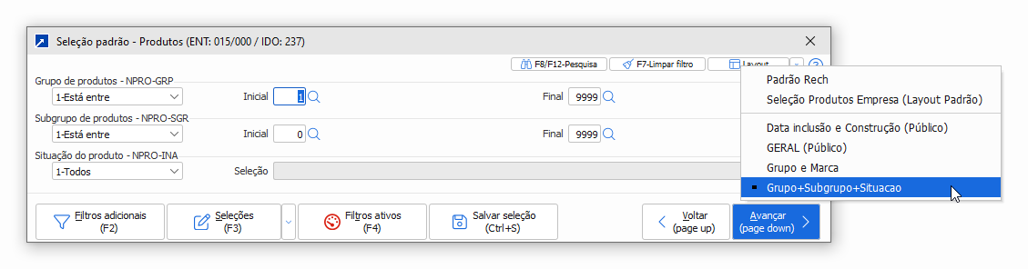 O Layout nada mais é que a visualização dos campos para realização de filtro na tela principal de seleção.