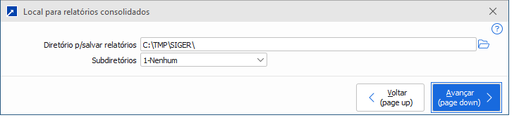 É possível definir uma pasta raiz para o salvamento e, opcionalmente, especificar subdiretórios. Esses subdiretórios podem ser organizados por empresa, período e tipo de relatório.