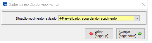 Quando estiver habilitada pré-validação, a situação do movimento será solicitada durante a inclusão ou alteração de um movimento: