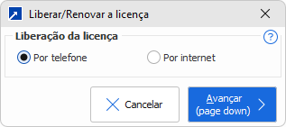 Liberar/Renovar a licença Liberação/renovação da licença por telefone ou por internet de forma manual. Por telefone: