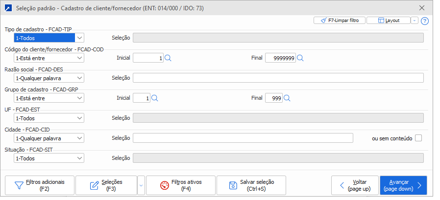 Ao avançar a primeira janela o segundo passo é aplicar uma seleção dos itens que serão incluídos no relatório antes da geração da listagem.
