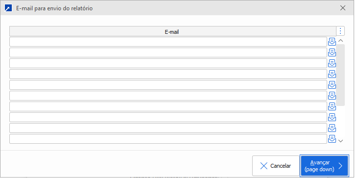 Ao acessar o botão irá exibir a janela para definir quais os e-mails vão receber o relatório ao ser gerado.
