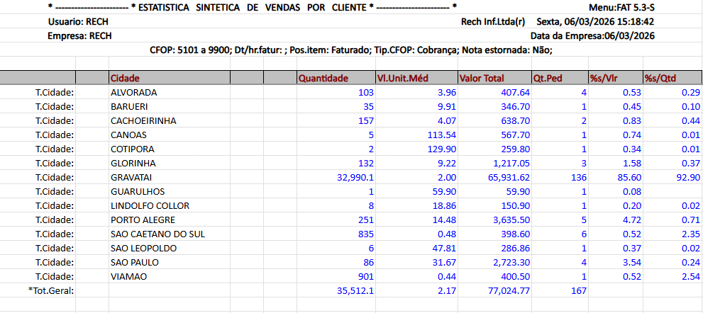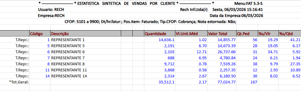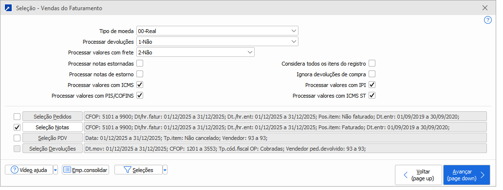 Esta é a mesma seleção padrão que é listada em vários relatórios do módulo de vendas e faturamento do SIGER®.