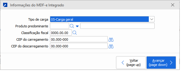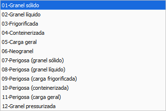 Produto predominante nas notas selecionado nesse MDF-e, assim como o tipo de carga.