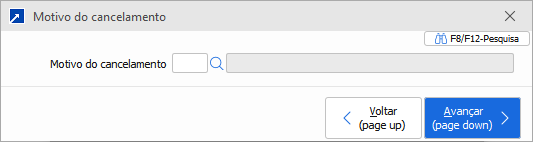 Ao avançar, será aceito o motivo de cancelamento, conforme a tabela genérica 29-Motivos de Perda/Recusa. + Saiba mais