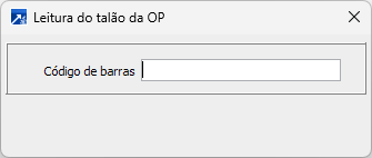 O código de barras do talão é composto por: número da OP, sequência da OP, talão e centro de custo (total de 20 algarismos).