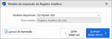 Imprime Registro Analítico do laudo selecionado no grid, utilizando o formulário RFP editável configurado na empresa do estoque (botão [Layouts de impressão]) + Saiba mais