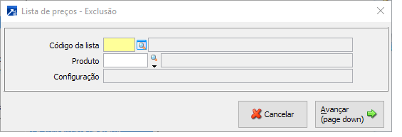 Exclui lista de preço conforme seleção.