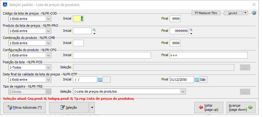 Neste tópico será abordada a manutenção consolidada da lista de preços, disponível no menu FAT 2.8-W. Para maiores informações sobre os recursos do Grid Dinâmico, acessar o link