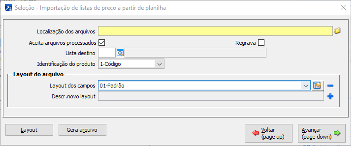 Neste botão é realizada a Inclusão da lista de preços.