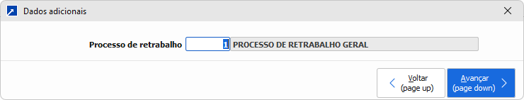 Na inclusão será aceita a seguinte janela para indicar um código de processo de retrabalho, afim de rastrear e controlar tais movimentos.