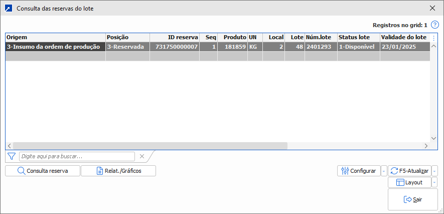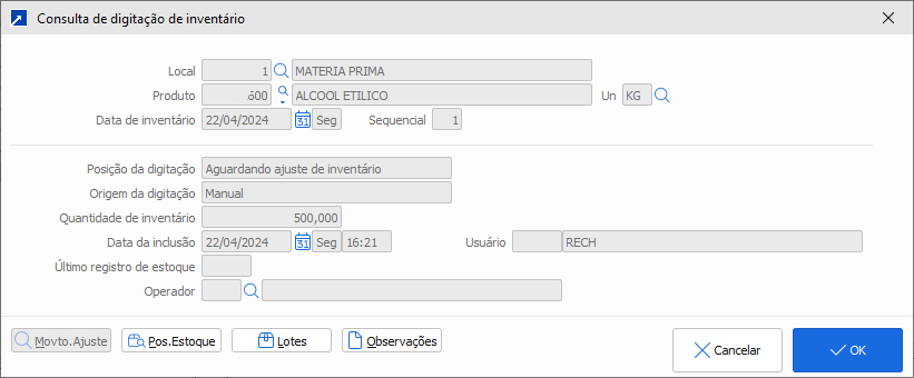 Consulta a digitação de inventário para o registro selecionado no grid, caso houver. + Saiba mais