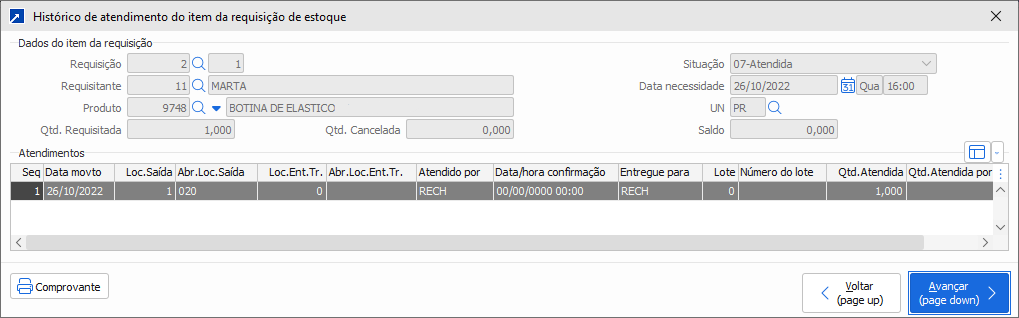 Obs.: Habilita o botão somente se configurado que faz confirmação de entrega da requisição de estoque.