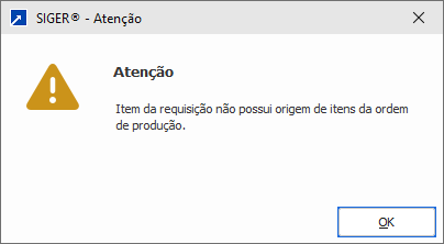 Quando o item não tem origem Gestão Industrial (vinculo direto), exibe mensagem abaixo: