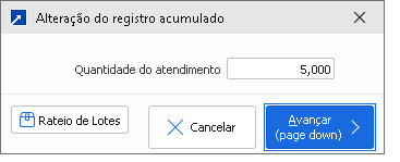 No botão [F2-Alterar] exibe a janela de alteração da quantidade para geração do atendimento.