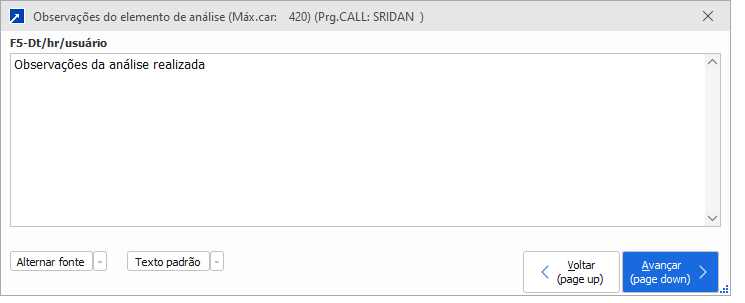 Espaço para descrever observações para o elemento de análise.